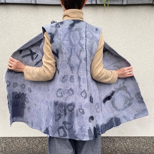 • Mustern oder das trendige „mark making” mit dem umweltfreundlichsten Schwarz: Sumi Tinte auf Seide. Abenteuerliche Effekte mit japanischen Pigmenten und Soya, die Reste kannst du ruhig in den Garten kippen. Lasse dich überraschen! (In diesem Kurs filzen wird nicht.)