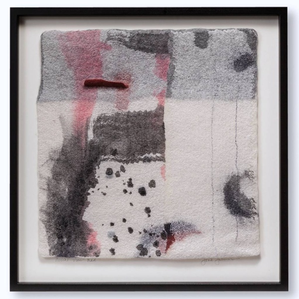 Sie wird auch über ihre Verwendung von Materialien sprechen. Diese ist vorbildlich, sowohl umweltfreundlich als auch profan: Baumwolle, Fundstücke, Pflanzenstücke, sie malt mit Rost, Tee und Kaffee. Überraschend mag die Verwendung von Salz und Gelatine sein… Verpasse das nicht.