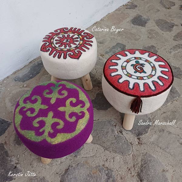 All unsere Fragen und Erfahrungen interaktiv auszutauschen zu können, TeilnehmerInnen wie DozentInnen, führt zu einem sehr großen gemeinsamen Wissen, wovon wir alle proftieren und wieder andersartige oder noch professionellere Filzarbeiten zur Welt bringen.