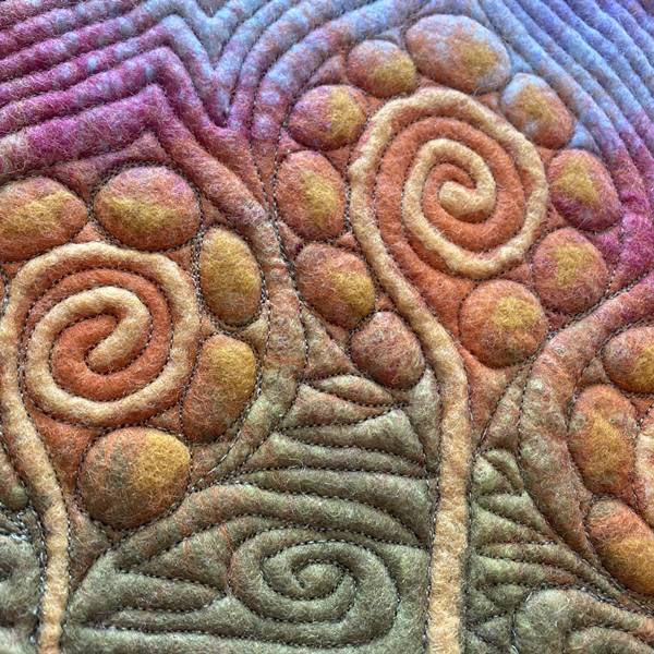 Der Gürtel oder das Kopfband dienen nur als Alibi…Lerne, wie du diese spannende Textur mit unterschiedlichen Linienführungen und mit endlos vielen Farbkombinationen gestalten und dann auf jeglichen Filzobjekten verwenden kannst.